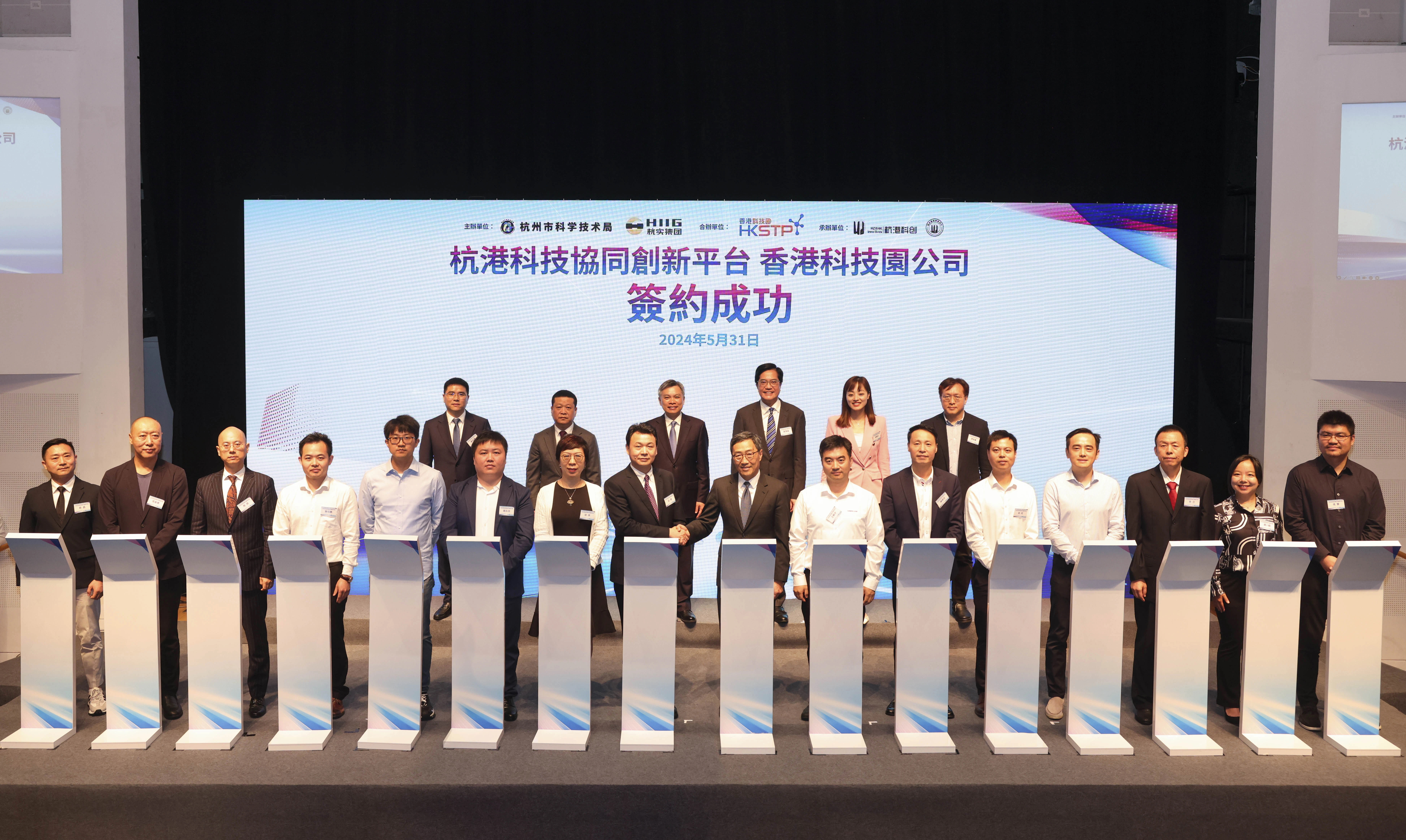 2024年5月31日,杭实集团党委书记、董事长钮健代表杭州创新孵化中心(香港)有限公司与香港科技园公司行政总裁黄克强签署联合孵化协议,并与 14家杭州科创企业签署入园发展合作备忘录。